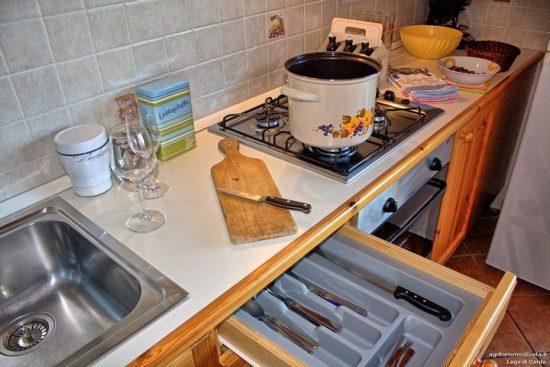 | Kochnische | 4 Kochplaten (Gas) Gasofen Kühlschrank m. Gefrierfach Kaffemaschine Toaster Wasserkocher |