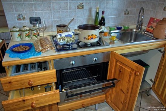 | Kochnische | 4 Kochplaten (Gas) Gasofen Kühlschrank m. Gefrierfach Kaffemaschine Toaster Wasserkocher |